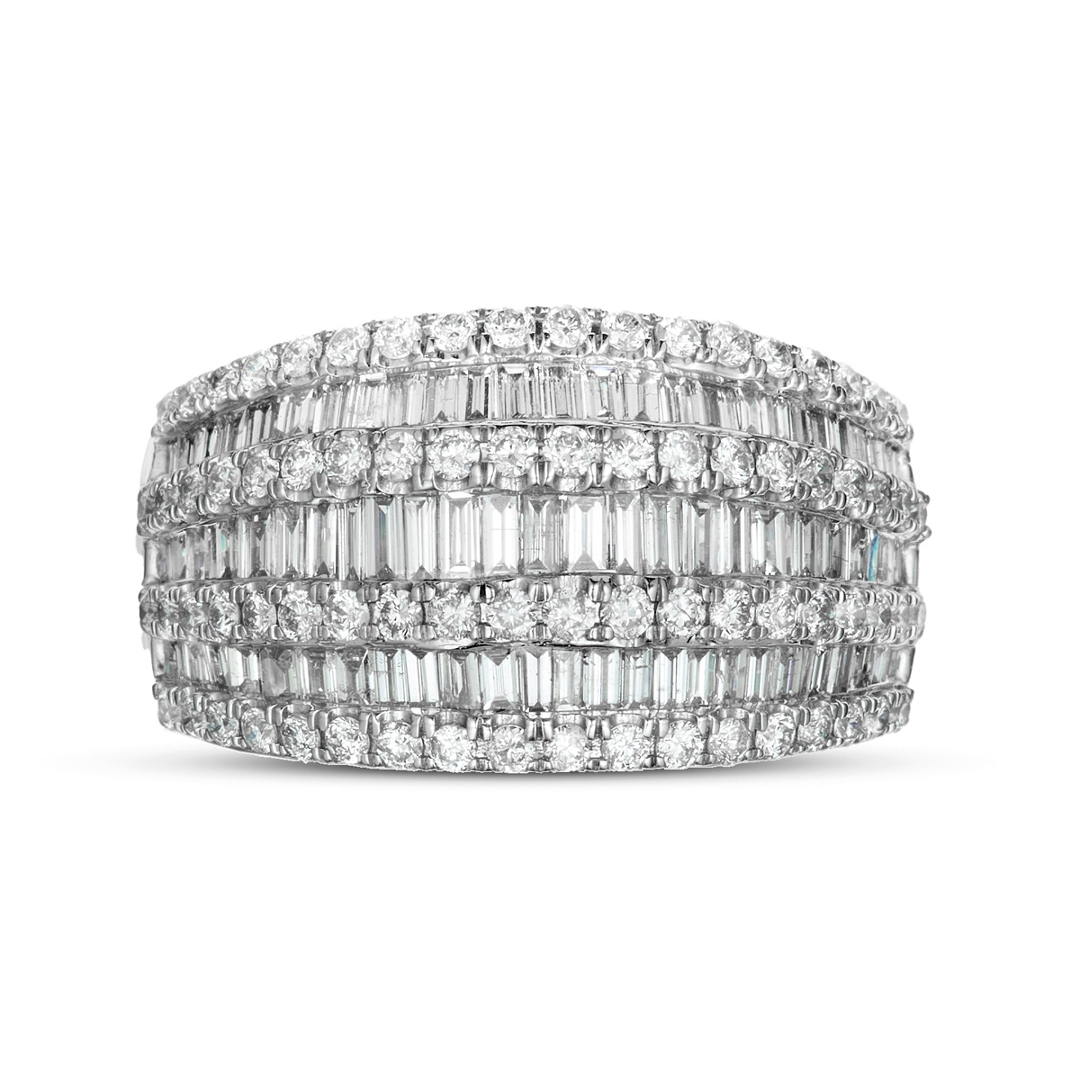 A brand-new, unused, certified natural diamond cluster ring, set with a cluster of baguette-cut and brilliant-cut diamonds, set in 18ct white gold.