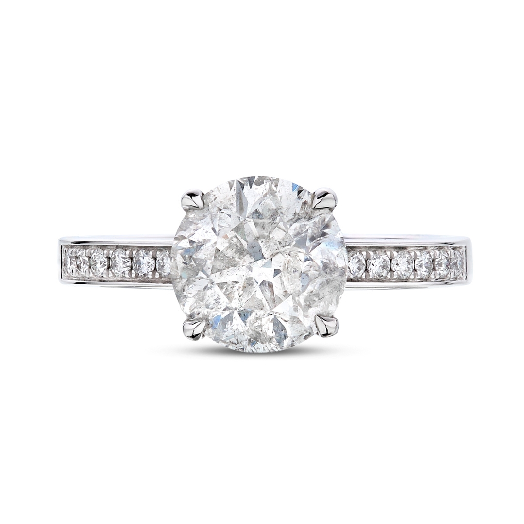 The principal diamond, graded J in colour with I1 clarity, delivers a bold visual impact, with its substantial size ensuring strong light performance and presence on the hand. Supporting this, the shoulder diamonds total 0.17ct, with SI1–SI2 clarity and H–I colour, adding a subtle yet effective enhancement of brilliance and balance to the overall design.