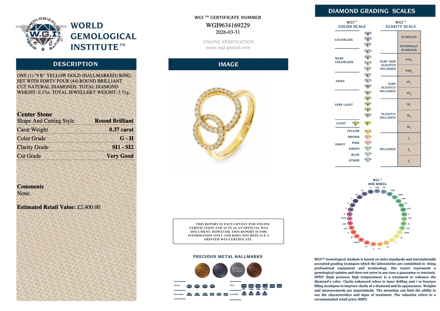Crafted in 9ct yellow gold and weighing 3.71g, the ring is lightweight yet well-made, providing comfort without compromising on quality. Natural diamond jewellery remains a popular option for those seeking both style and investment potential, supported by consistent global demand. With a valuation of £2,400.00, this piece represents an accessible opportunity to acquire a certified natural diamond ring.