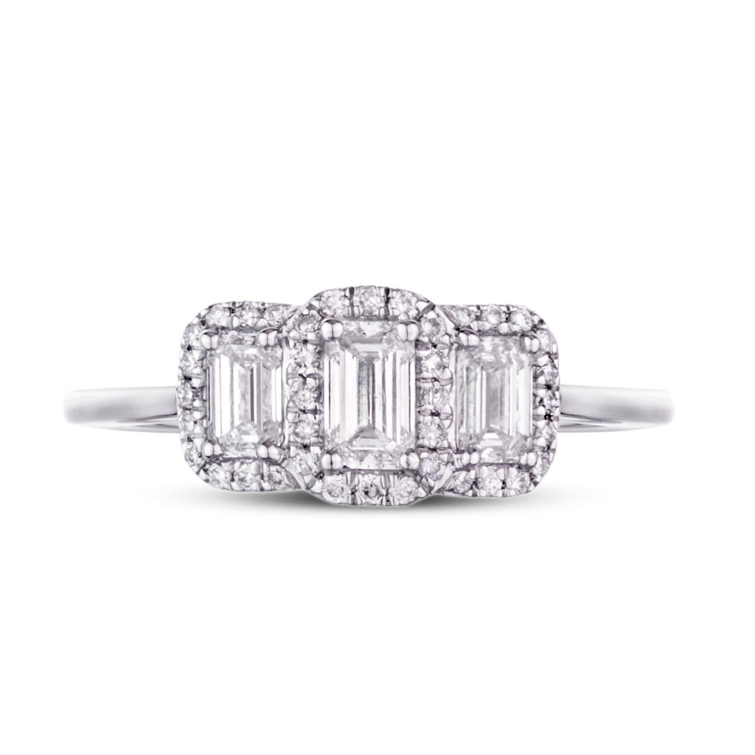 - > Natural Diamond Emerald Shaped Trio Cluster Ring 0.80ct