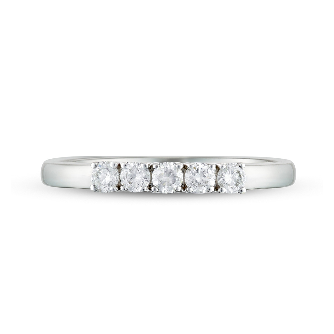 A brand-new, unused, certified natural diamond five-stone eternity ring, with five brilliant-cut diamonds, set in 18ct white gold.