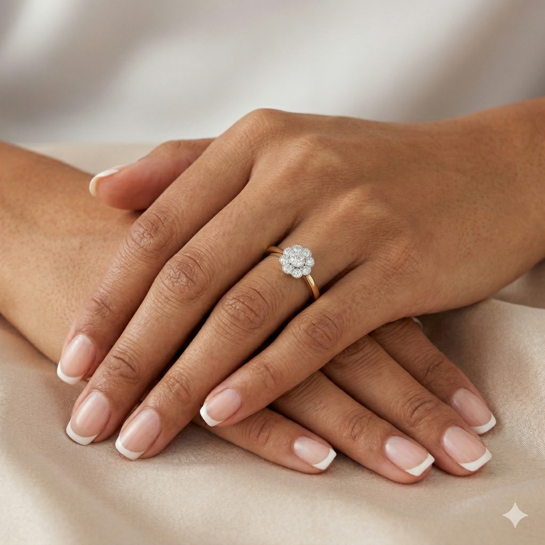 This striking cluster ring is a perfect fusion of grace and radiance — a stunning expression of love, luxury and enduring worth.