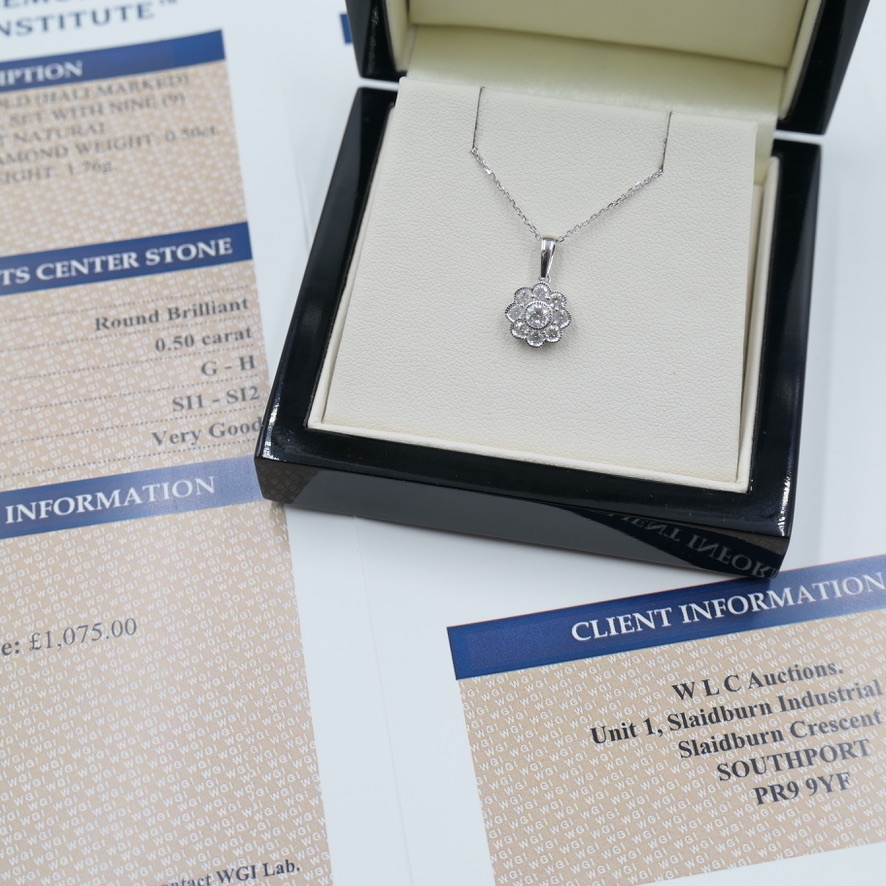 Valued at £1,075 and weighing 1.76 grams, this flower-shaped pendant captures both elegance and sentiment. It is a piece that celebrates femininity, nature, and everlasting beauty — a timeless addition to any fine jewellery collection and a meaningful gift to be treasured for generations.