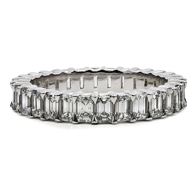 A brand-new, unused, certified natural diamond full eternity ring, with thirty-one emerald-cut diamonds, set in platinum.