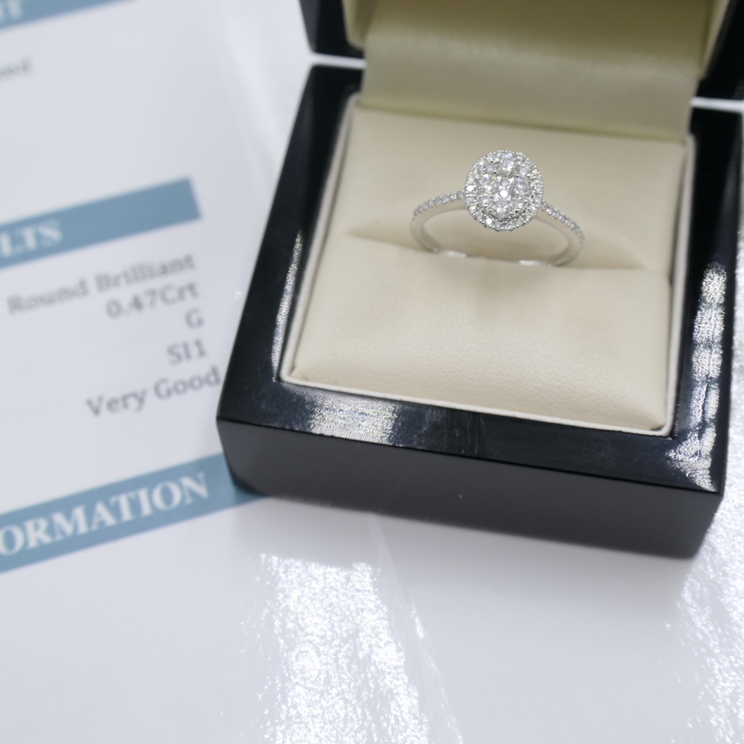 - > Natural Diamond Oval Shaped Cluster Ring 0.47ct