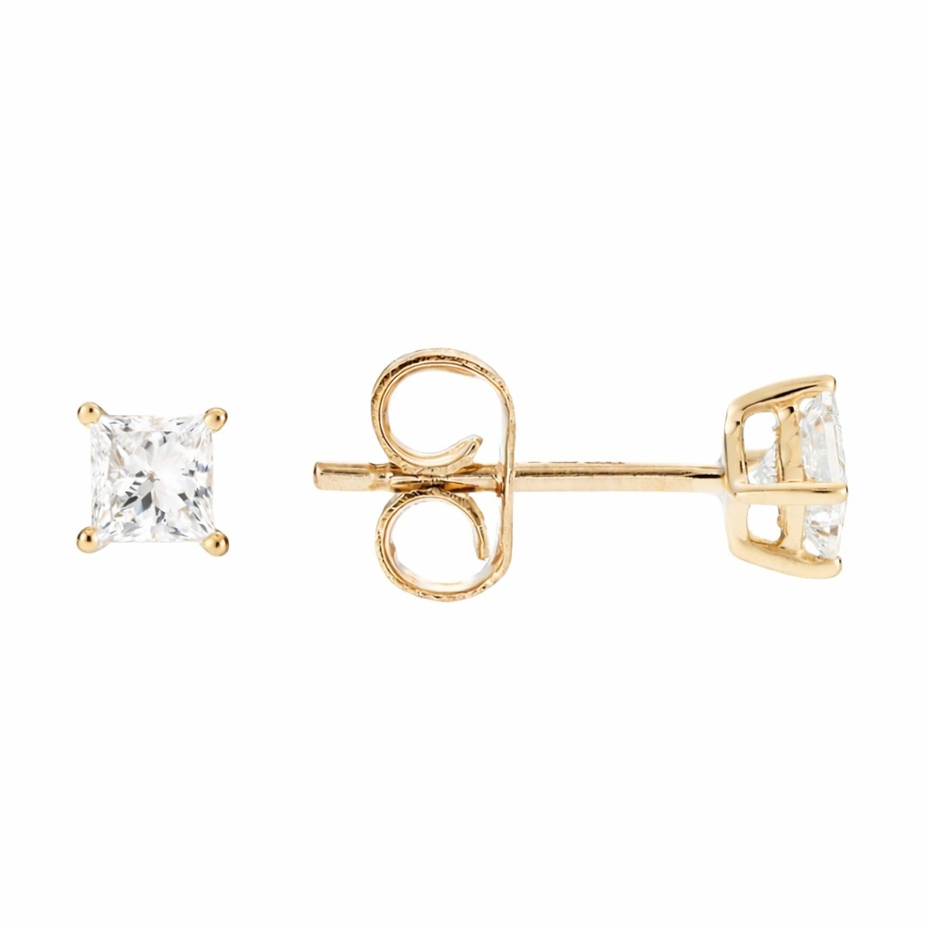 - > Natural Diamond Princess Cut Solitaire Earrings 0.50ct