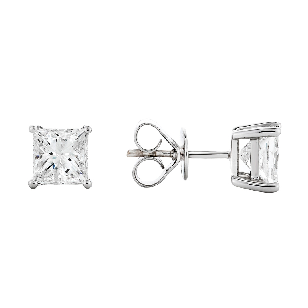 - > Natural Diamond Princess Cut Solitaire Earrings 2.03ct