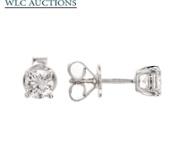 A brand new, unused certified pair of natural diamond solitaire earrings that epitomise timeless luxury, brilliance and refinement. Each earring features a magnificent brilliant-cut natural diamond, with a combined total weight of 2.03ct, chosen for its outstanding fire, balance and presence. The diamonds are graded G–H in colour and SI2 in clarity, producing a captivating sparkle and radiance that commands attention from every angle. Expertly set in 18ct white gold, the cool, lustrous metal enhances the diamonds’ natural luminosity, giving the design a flawless, modern elegance. With a total weight of 2.19 grams and a professional valuation of £13,375, these earrings represent exceptional craftsmanship and enduring sophistication.