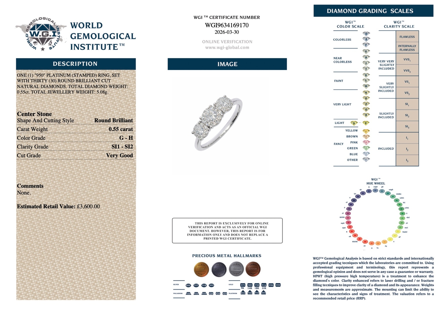 Crafted in solid platinum and weighing 5.08g, the ring has a reassuring, durable feel, reflecting its high-quality construction. Natural diamond jewellery is widely recognised for its ability to combine everyday wearability with lasting financial potential. With a valuation of £3,600.00, this piece represents an attractive opportunity to acquire a certified natural diamond ring with strong visual appeal.
