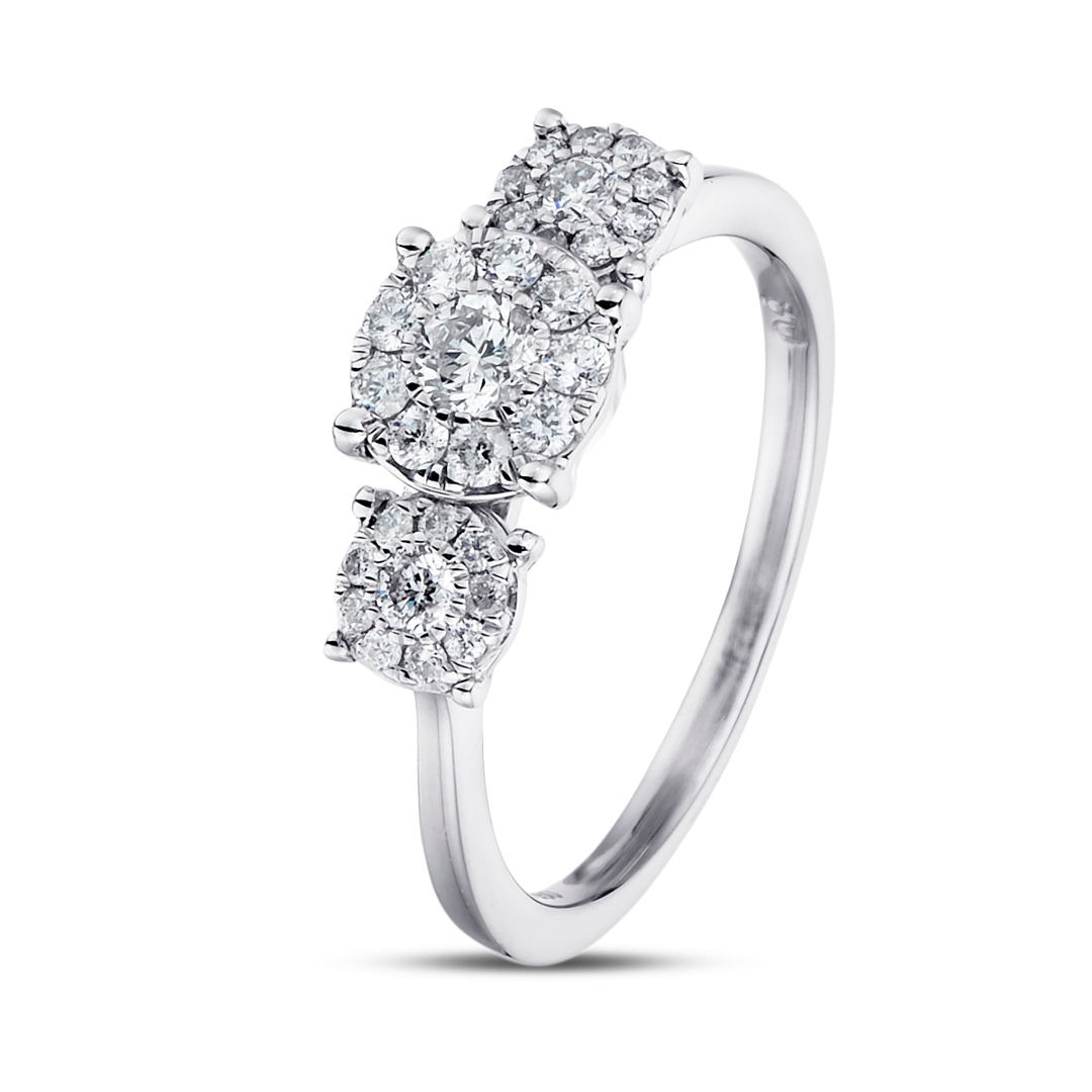 - > Natural Diamond Round Shaped Trio Cluster Ring 0.55ct