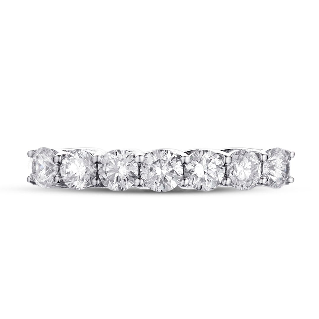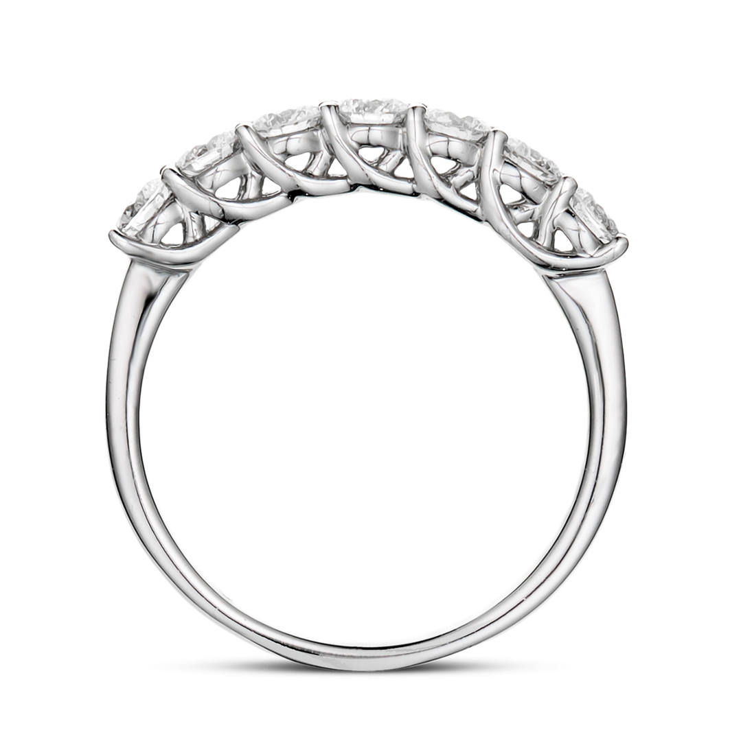 Natural diamonds are renowned for their exceptional beauty and rarity, and this ring sophisticatedly showcases these qualities. The seven brilliant-cut diamonds are carefully set to create a continuous sparkle flow, symbolising timeless love and commitment. The 18ct white gold setting enhances the diamonds’ natural radiance, providing a luxurious backdrop that elevates the overall design.