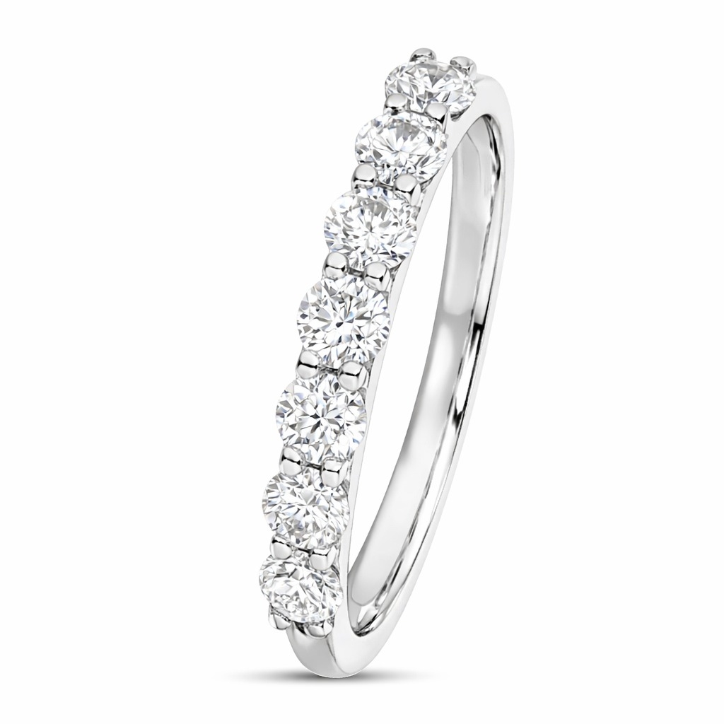 Natural diamonds are renowned for their exceptional beauty and rarity, and this ring sophisticatedly showcases these qualities. The seven brilliant-cut diamonds are carefully set to create a continuous flow of sparkle, symbolising timeless love and commitment. The 18ct white gold setting enhances the diamonds’ natural radiance, providing a luxurious backdrop that elevates the overall design.