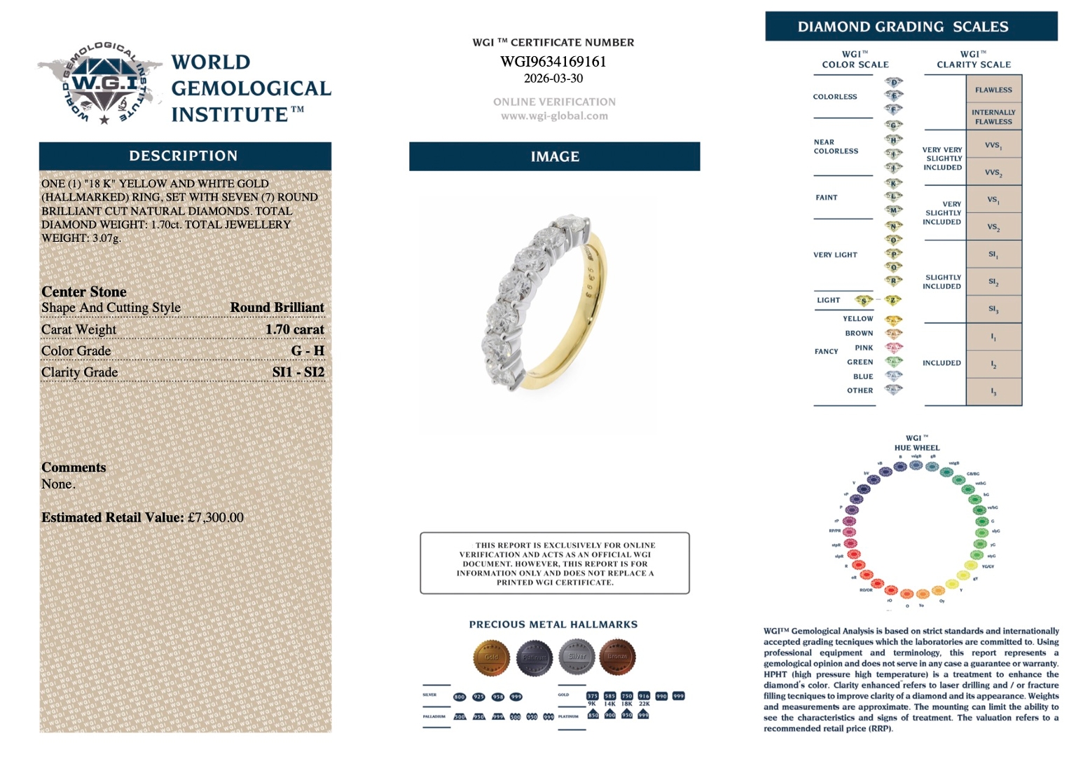 Diamond weight 1.70ct
