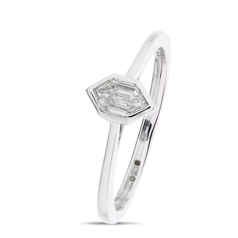 A brand-new, unused, certified platinum natural diamond solitaire ring features a mesmerising fancy-cut diamond at its centre. The diamond, weighing 0.28 carats, captivates with its exceptional clarity graded at VS2 and a radiant colour grade of H, showcasing a harmonious blend of brilliance and warmth.
