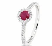 A halo setting, consisting of a cluster of brilliant diamonds, surrounds the centre diamond. These additional diamonds enhance the sparkle and brilliance of the central stone, adding to the ring's overall allure and elegance. Additionally, brilliant-cut diamonds adorn the ring's shoulders, further accentuating its beauty and sophistication.