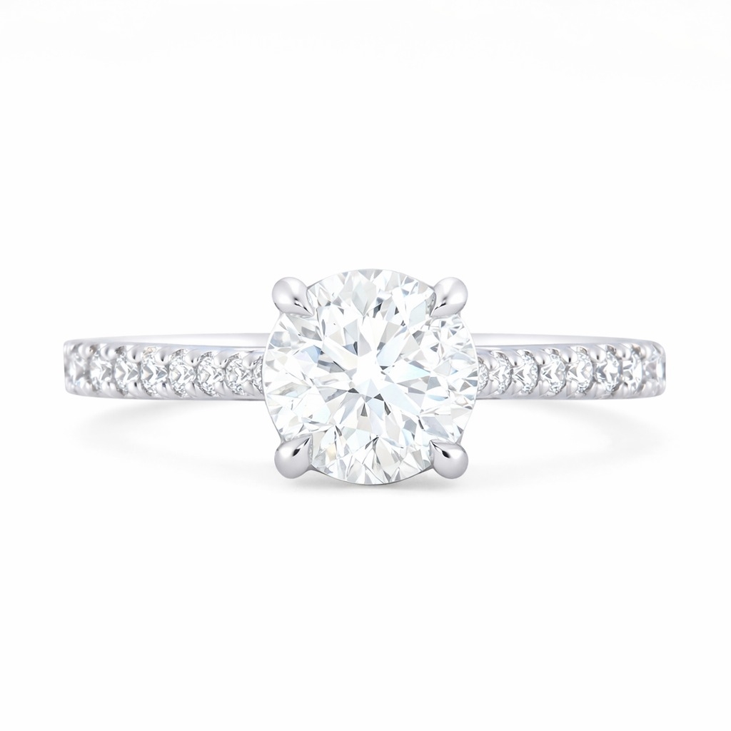 The shoulders of the ring are delicately adorned with an additional cluster of brilliant-cut diamonds, weighing 0.23ct in total. With clarity ranging from VS2 to SI1 and colour grades of F-G, these accent stones offer a crisp brilliance that perfectly complements the centre diamond. The platinum setting adds further prestige, known for its durability and strength, securely holding the stones while complementing their radiance. Its refined design makes the ring comfortable to wear while remaining striking.