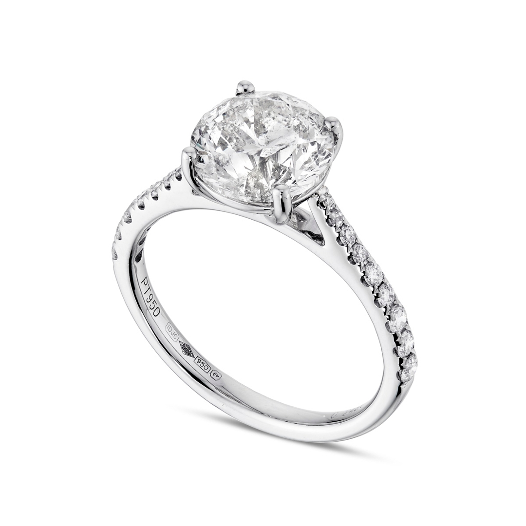 A brand-new, unused certified natural diamond solitaire engagement ring, crafted in platinum and centred with an exceptional 2.54ct brilliant-cut diamond. Graded H colour and SI2 clarity, the centre stone displays a pleasing balance of warmth and brightness, with impressive brilliance and scale that creates a powerful presence on the hand while retaining a timeless and elegant aesthetic.