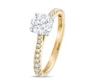 A brand-new, unused, certified natural diamond solitaire engagement ring set with one brilliant-cut diamond at the centre & a cluster of brilliant-cut diamonds to the shoulders set in 18ct yellow & white gold.