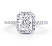 A brand new, unused, certified natural diamond solitaire engagement ring, set with a brilliant cut diamond at the centre & a cluster of brilliant cut diamonds on the shoulders, set in platinum.