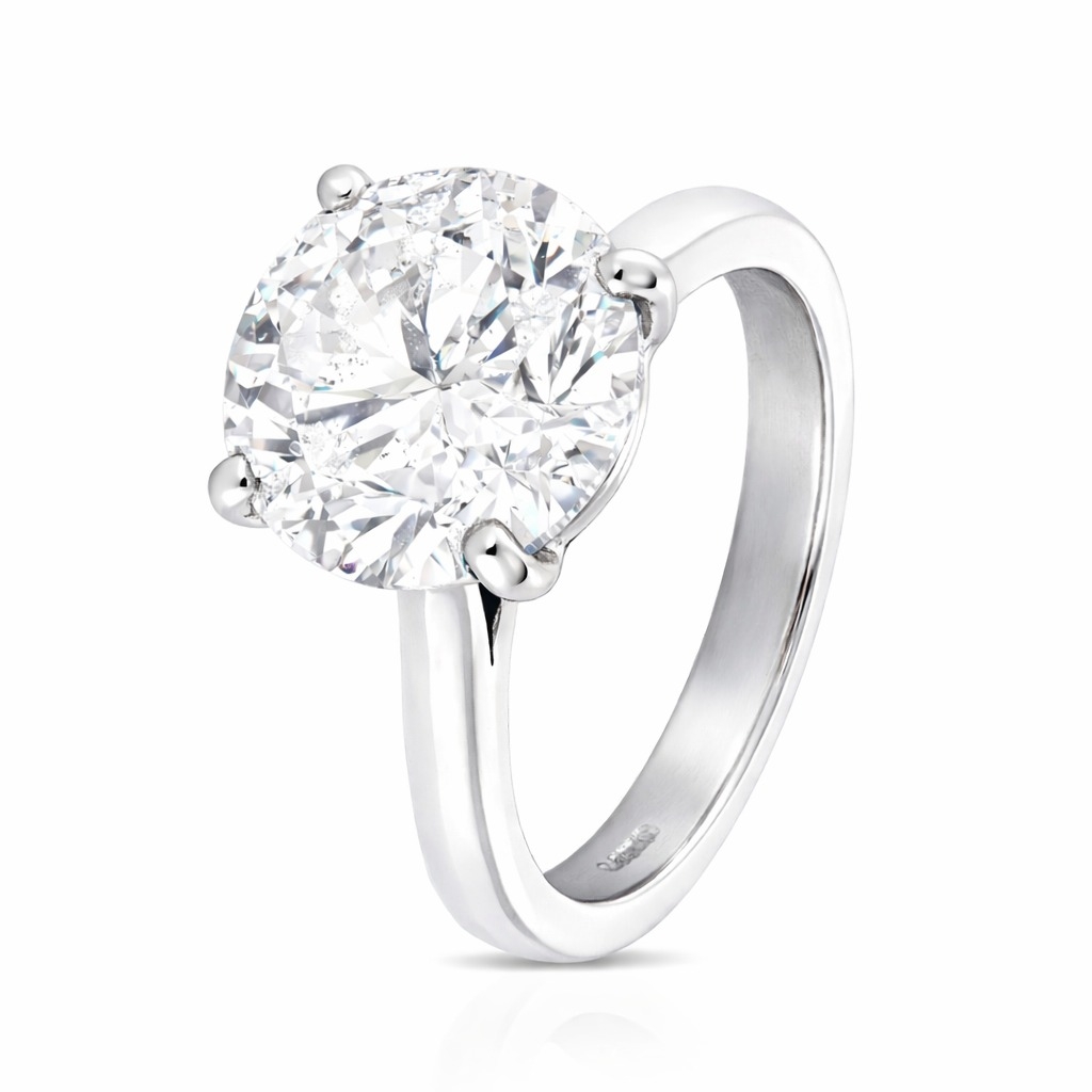 A brand-new, unused, certified platinum solitaire engagement ring, masterfully set with a breathtaking 6.50ct brilliant-cut natural diamond at its centre. This stunning stone captivates with its generous size and brilliance, held securely in an elegant platinum setting that enhances its natural radiance. With SI2 clarity, the diamond boasts impressive sparkle and lively internal reflections, while the J colour lends it a soft, warm glow that adds depth and character to this striking piece. The solitaire design is timeless, allowing the diamond's beauty to take centre stage in a ring that speaks of lasting commitment and refined taste.