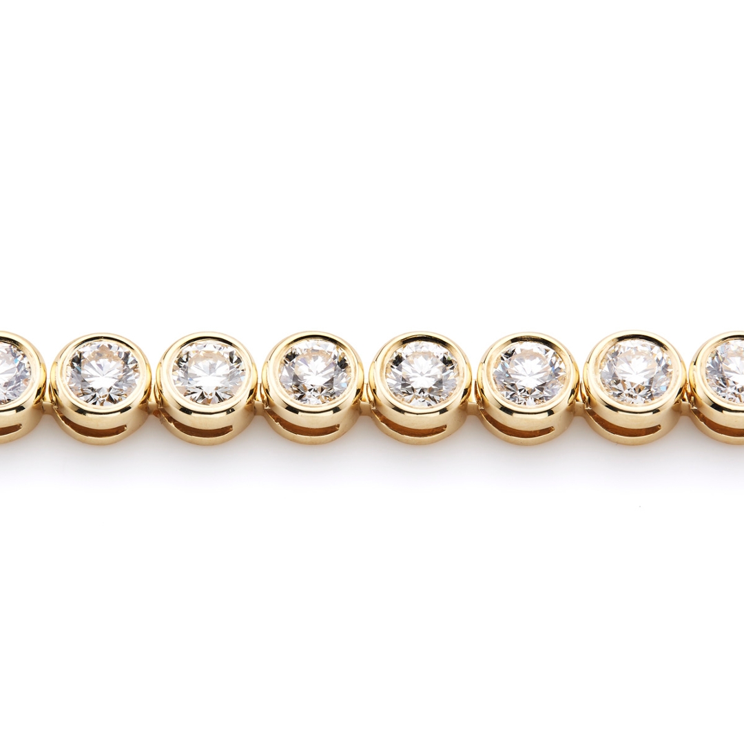 A brand-new, unused certified natural diamond tennis bracelet that radiates pure luxury, brilliance and timeless sophistication. This exceptional piece is set with a breathtaking cluster of brilliant-cut natural diamonds, totalling 7.01ct. Each diamond has been expertly selected and matched for superior fire, symmetry and sparkle, graded F–G in colour and VS1–VS2 in clarity to ensure a consistent display of exceptional brightness and purity. The diamonds form an elegant, unbroken line of light, beautifully complemented by the warm tone of 18ct yellow gold, which enhances their radiant white brilliance. Measuring 18cm in length and weighing 18.57 grams, this bracelet offers both comfort and durability, reflecting outstanding craftsmanship and exquisite detail. With a professional valuation of £234,165, it represents the pinnacle of fine jewellery design and prestige.