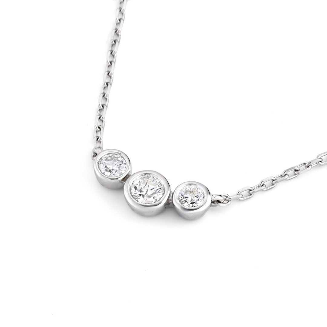 A brand-new, unused, certified natural diamond three-stone cluster pendant, set with three brilliant cut diamonds, set in 18ct white gold.