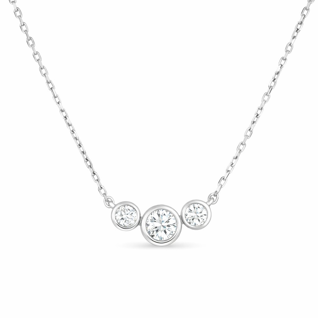 A brand-new, unused, certified natural diamond three-stone cluster pendant, set with three brilliant cut diamonds, set in 18ct white gold.