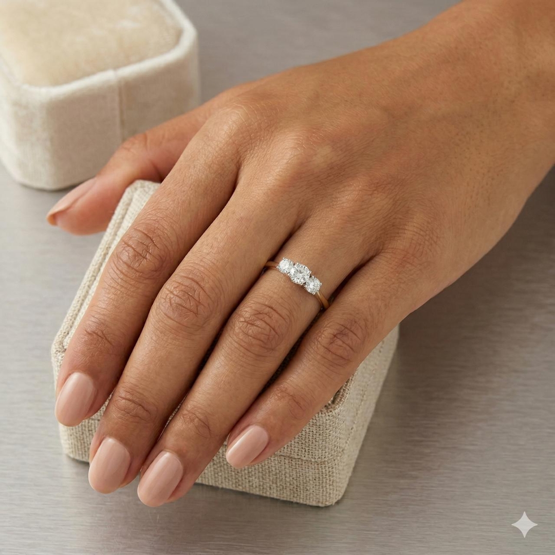 The diamonds in this ring have a clarity range of SI1 to SI2, indicating slight inclusions that are generally not visible to the naked eye. This clarity range ensures that the diamonds retain their brilliance and sparkle while offering a more affordable option than higher clarity grades. The diamonds' colour is graded between F and G, placing them in the near-colourless range. This ensures the diamonds appear bright and clear, enhancing their overall beauty against the contrasting gold tones.