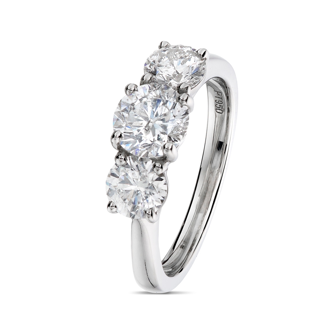 A brand-new, unused, certified natural diamond three-stone eternity ring, with three brilliant cut diamonds, set in platinum.