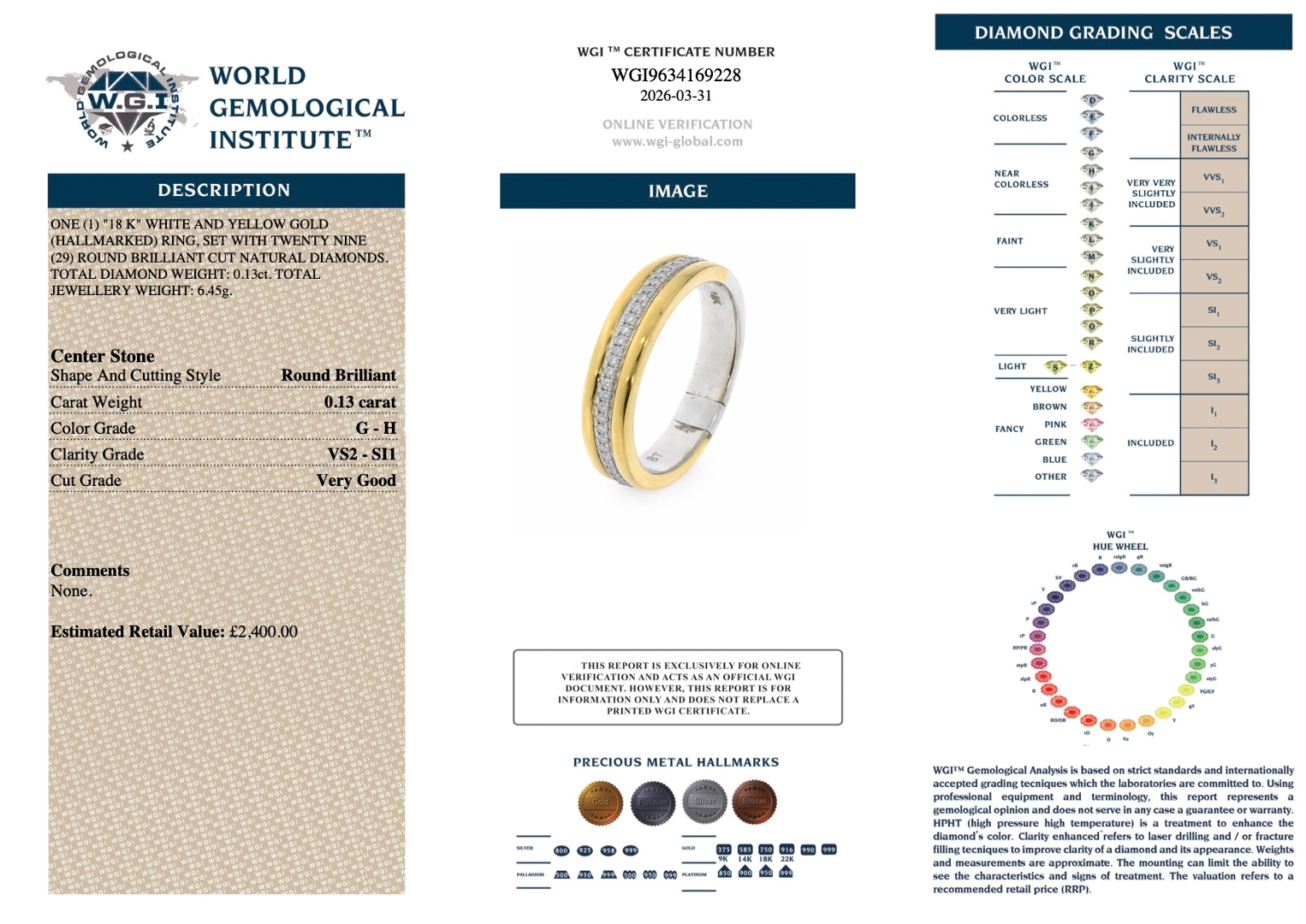 Crafted in 18ct white and yellow gold and weighing 6.45g, the ring has a solid and comfortable feel, suited to everyday wear. Natural diamond jewellery continues to be recognised for its investment potential, offering both aesthetic enjoyment and lasting value. With a valuation of £2,400.00, this piece presents a practical opportunity to acquire a certified natural diamond ring with timeless significance.