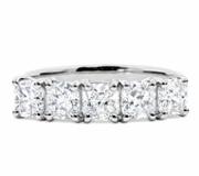 A brand-new, unused, certified natural diamond wishbone eternity ring set with seven brilliant cut diamonds, set in platinum.