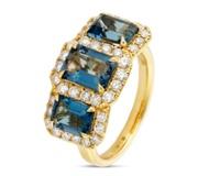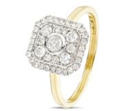- > Natural Emerald 0.54ct & Diamond 0.34ct Three Stone Cluster Ring