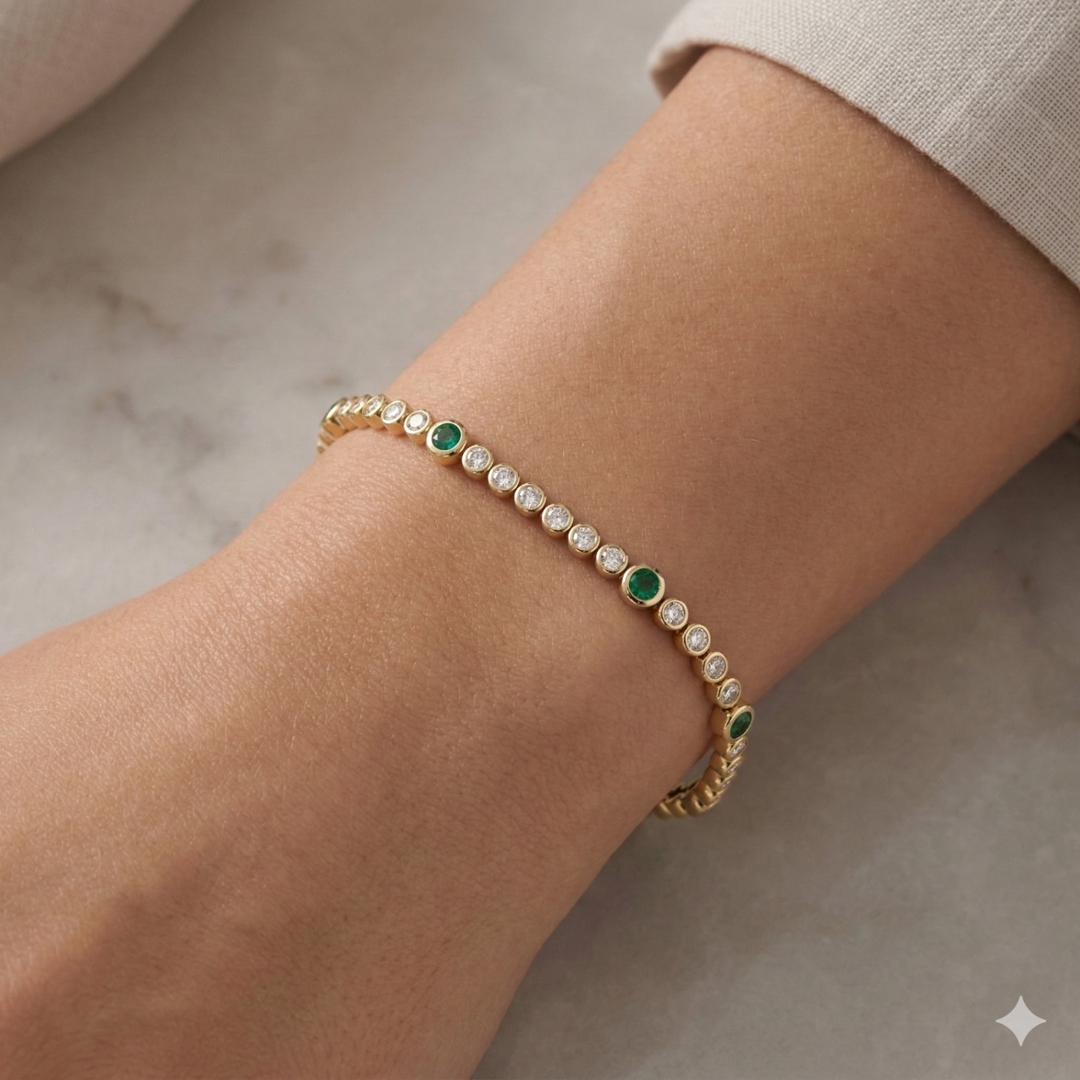 - > Natural Emerald 0.72ct & Diamond 1.20ct Line Bracelet
