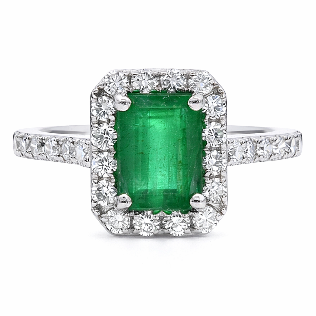 Natural Emerald 1.24ct & Diamond 0.53ct Asscher Shaped Cluster Ring