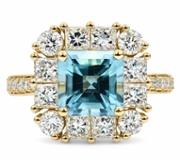 - > Natural Emerald 1.57ct & Diamond 0.40ct Asscher Shaped Cluster Ring