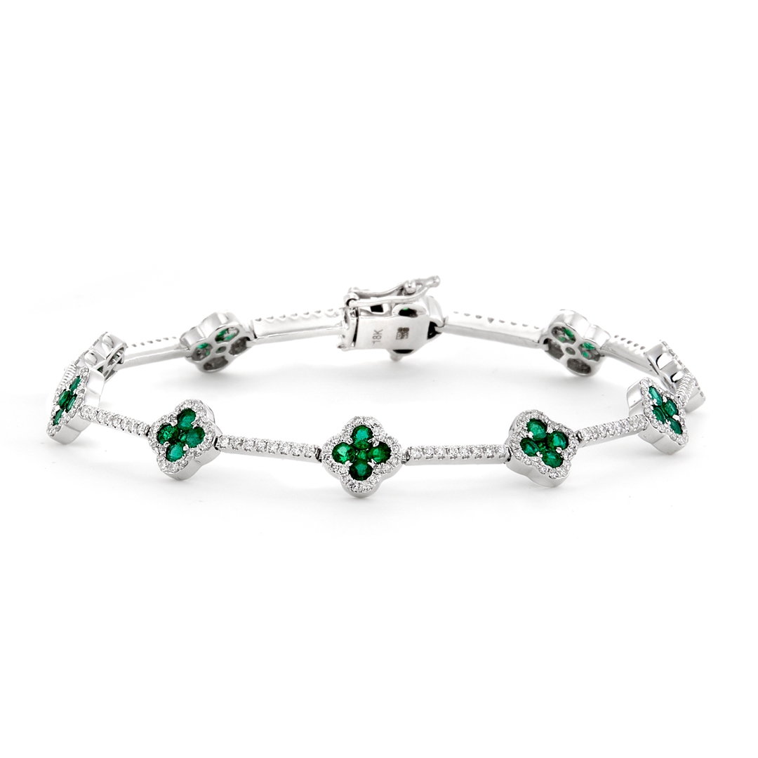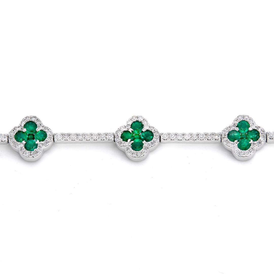 Emeralds, one of the most celebrated gemstones in history, are admired for their distinctive green colour and association with renewal and harmony. Their natural inclusions, often called the stone’s “jardin,” give each gem individuality and character. When combined with the timeless brilliance of diamonds, this bracelet becomes a piece of jewellery that reflects both elegance and enduring natural beauty. The craftsmanship of the white gold setting further enhances the stones' radiance, ensuring a luxurious finish.