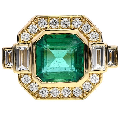- > Natural Emerald 2.78ct & Diamond 0.71ct Asscher Shaped Cluster Ring