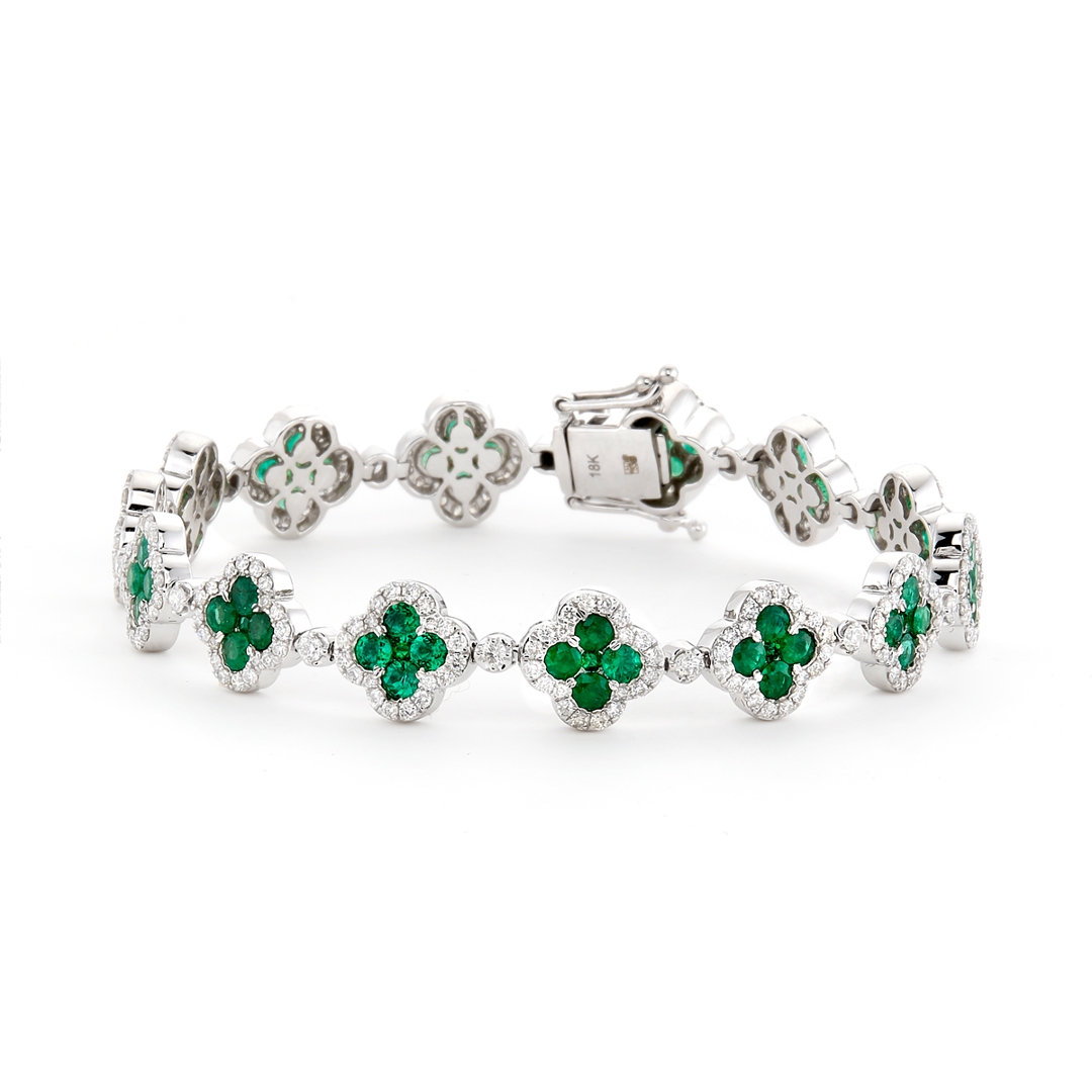 Emeralds are among the most cherished gemstones, admired for centuries as symbols of renewal, vitality, and prosperity. Their distinct green colour sets them apart from all other gemstones, ensuring an unmistakable presence in fine jewellery. Combined with natural diamonds—treasured for their rarity and enduring appeal—this bracelet embodies both luxury and lasting significance. Each stone is individually unique, brought together to create a piece of timeless artistry.