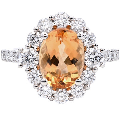 - > Natural Golden Topaz 2.53ct & Diamond 1.10ct Oval Shaped Cluster Ring