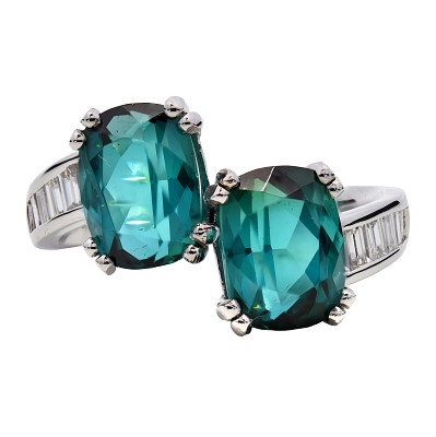- > Natural Indigo Blue Tourmaline 3.27ct & Diamond 0.41ct Toi et Moi Ring