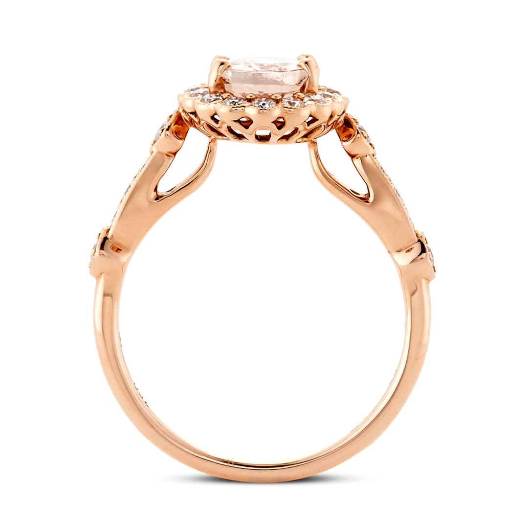 Expertly crafted in 18-carat rose gold and weighing 3.45 grams, this exquisite ring combines lasting strength with an elegant, romantic aesthetic. The warm blush tones of rose gold complement the gentle colour of the morganite, while amplifying the fire and clarity of the surrounding diamonds. Each gemstone is precisely set to ensure symmetry, balance, and enduring radiance, reflecting the finest standards of jewellery craftsmanship.