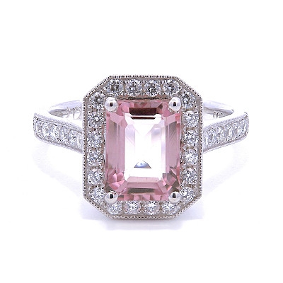- > Natural Morganite 2.03ct & Diamond 0.38ct Asscher Shaped Cluster Ring