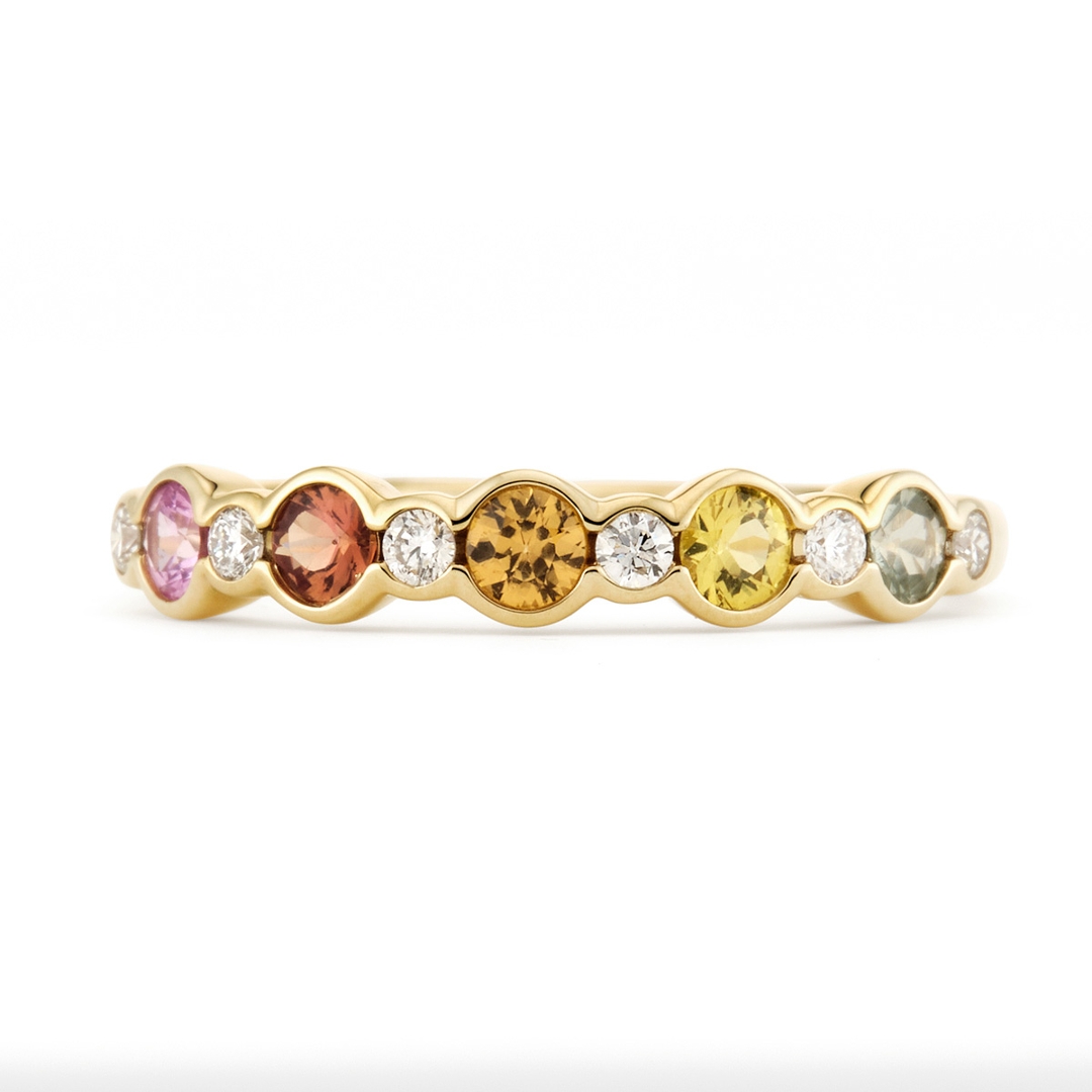 - > Natural Multi Coloured Sapphire 0.50ct & Diamond 0.12ct Eternity Ring