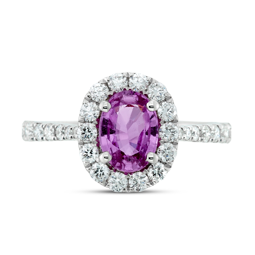 - > Natural Pink Sapphire 1.24ct & Diamond 0.61ct Oval Shaped Cluster Ring