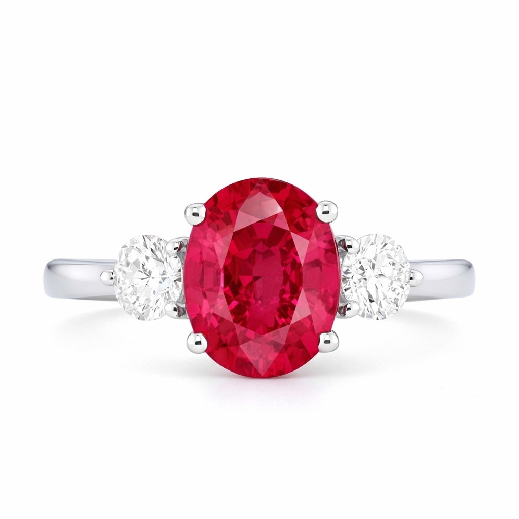 On either side of the sapphire are two brilliant-cut diamonds, with a combined weight of 0.36ct. These diamonds, graded SI1-SI2 for clarity and G-H for colour, radiate exceptional brilliance and fire. Their sparkle contrasts beautifully with the sapphire's deep pink, enhancing its beauty and adding depth to the overall design. The diamonds’ exquisite clarity ensures they shimmer with every movement, creating a dazzling effect.
