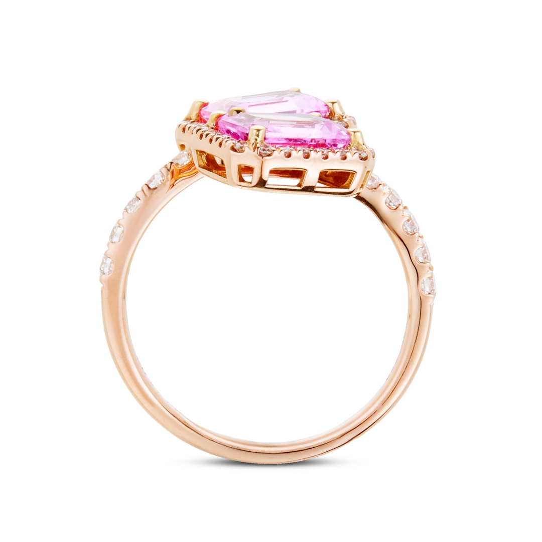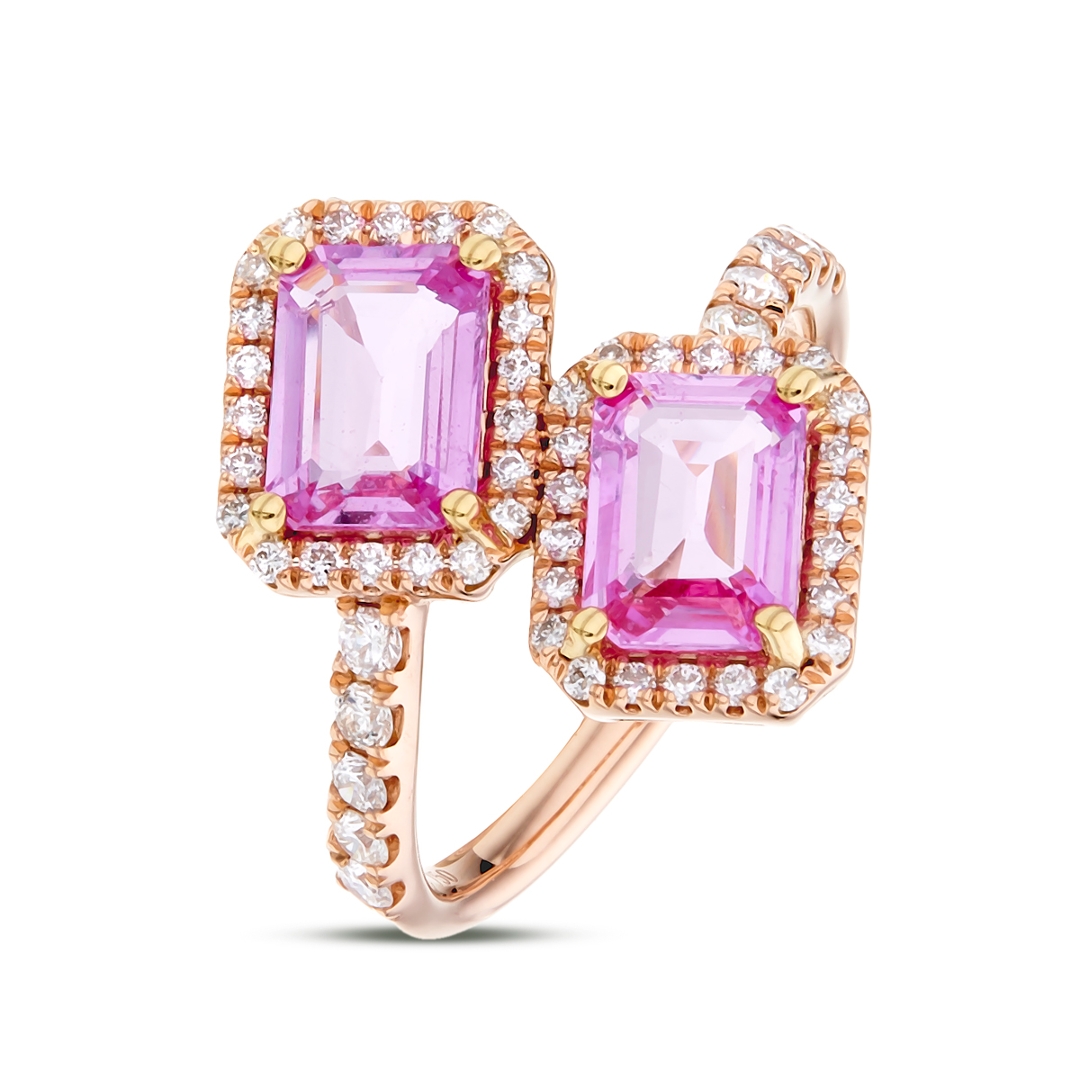 - > Natural Pink Sapphire 2.38ct & Diamond 0.44ct Emerald Shaped Toi et Moi Ring