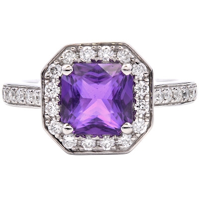 - > Natural Purple Sapphire 1.63ct & Diamond 0.35ct Asscher Shaped Cluster Ring