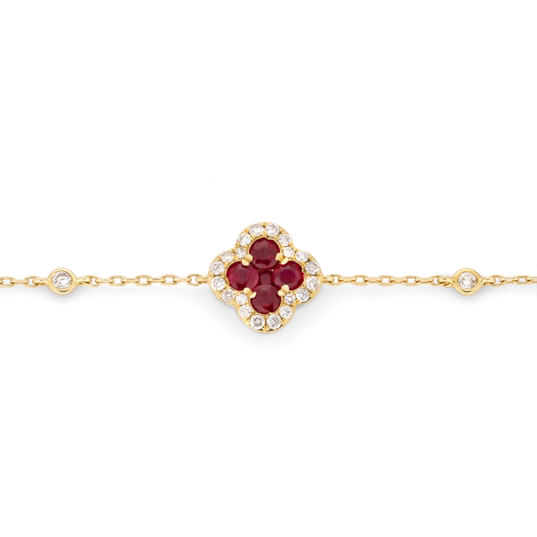 - > Natural Ruby 0.64ct & Diamond 0.37ct Clover Shaped Chain Bracelet