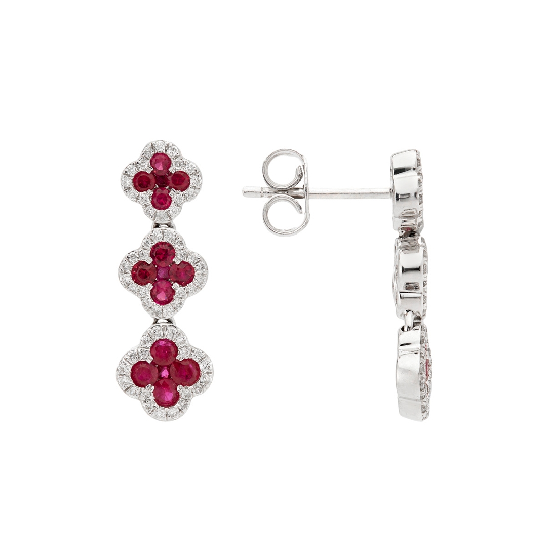 - > Natural Ruby 1.01ct & Diamond 0.23ct Clover Shaped Droplet Cluster Earrings