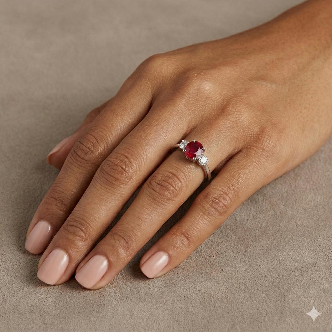 - > Natural Ruby 1.25ct & Diamond 0.25ct Three Stone Cluster Ring